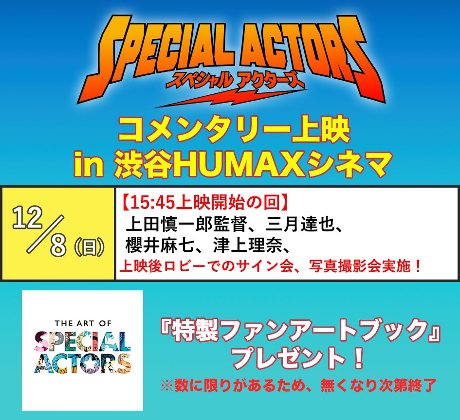 こう言う趣旨のイベントって今後もガンガン増えてほしいな、別に「スペシャルアクターズ」や上田慎一郎監督作に限った話じゃないけど。